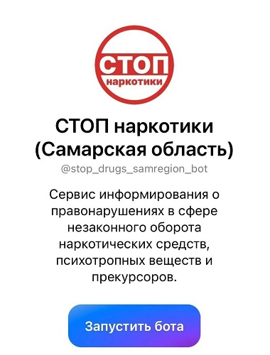 Анонимный чат-бот «СТОП наркотики (Самарская область)» в мессенджере MAX